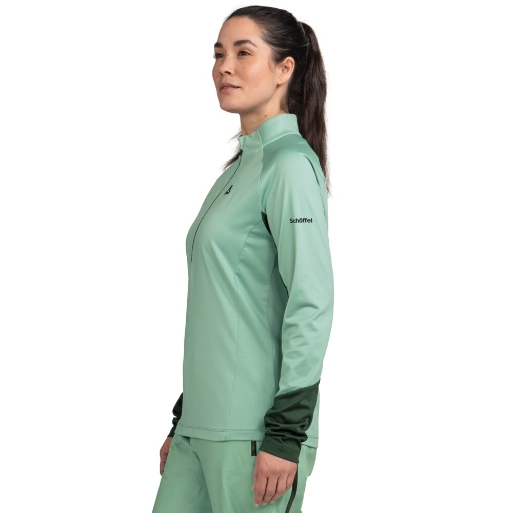Schöffel Longsleeve Style Safoon WMS (vel.34-44, 46) S tímto sportovním přiléhavým rolákem budete dokonale vybaveni pro aktivní dobrodružství. Stojatý límec s ochranou brady a laserem střižený spodní lem vám poskytnou další pohodlí, zatímco konstrukce ramen bez švů