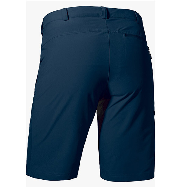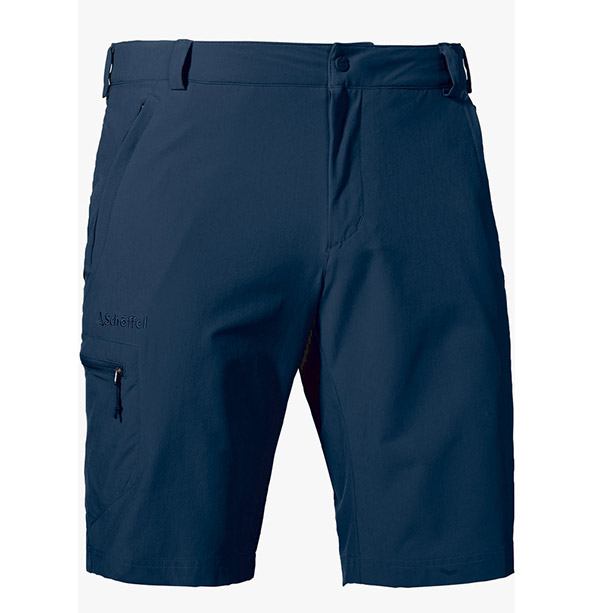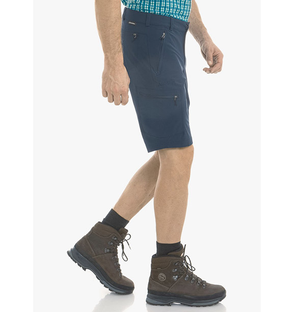 Schoffel pánské modré turistické šortky Folkstone. Lehké šortky vyrobené ze 4směrně strečového materiálu pro letní trekingové túry. Lehké funkční kraťasy od Schöffel jsou vhodné pro vysoké nároky na vícedenní túru díky možnosti vnitřního nastavení pasu a různým kapsám na zip. Kraťasy jsou vodoodpudivé a odvádějí vlhkost ven pro vynikající tělesné klima. Šortky Schöffel umožňují za všech okolností ideální volnost pohybu, což znamená, že díky elastickému materiálu lze zvládnout i větší výškové rozdíly.
