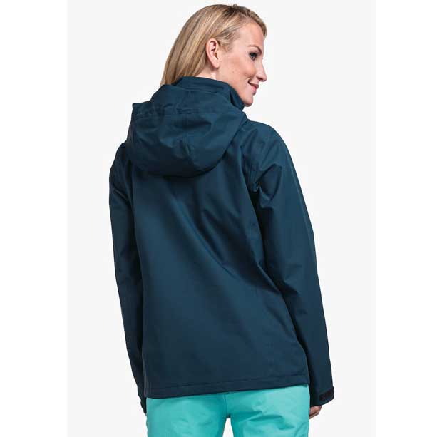Schöffel Jacket Gmund dámská modrá turistická bunda. Výlet za každého počasí. Vše, co potřebujete, je vhodné oblečení od Schöffel. Turistická bunda z materiálu VENTURI Ripstop je nejen odolná, ale díky vodnímu sloupci 10 000 mm je i voděodolná. Navíc je materiál větruodolný a vysoce prodyšný. Tělesné teplo tak krásně cirkuluje a uvnitř bundy nedochází k nepříjemnému hromadění tepla. Pevnou kapotu lze v případě potřeby sbalit dovnitř kapoty. Individuálně nastavitelné manžety a dvě vnější kapsy na zip jsou dalšími praktickými prvky.