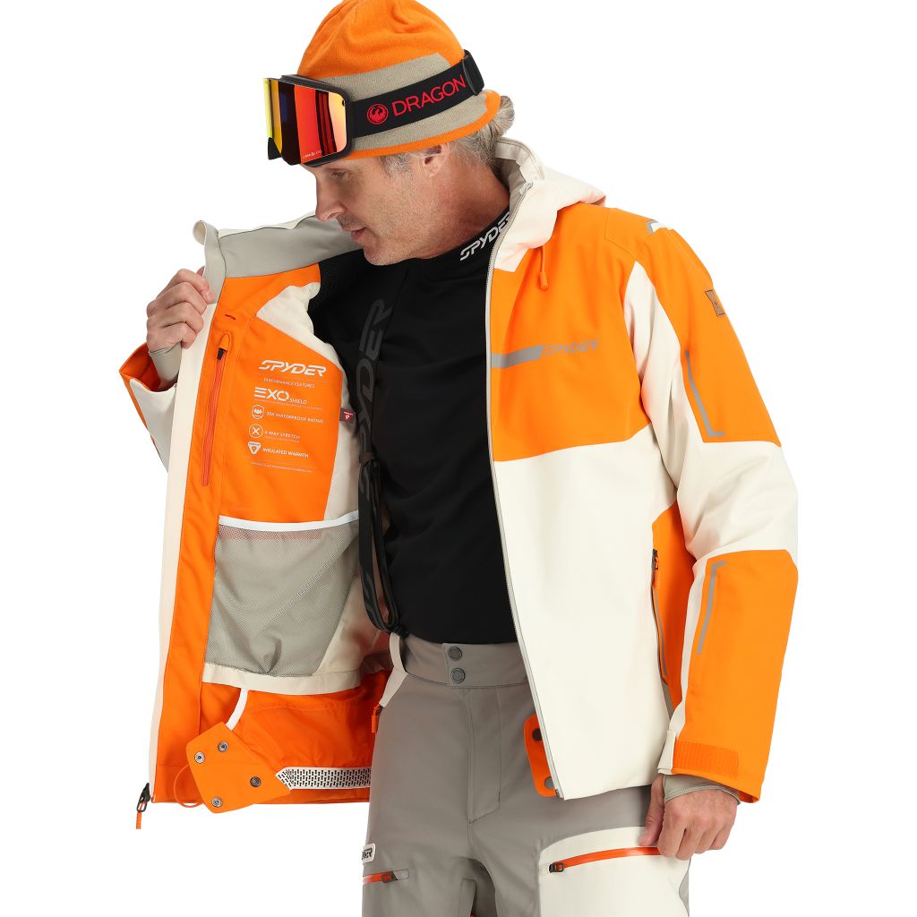 Spyder TITAN ORANGE SHOCK pánská lyžařská bunda. Bunda Titan je základním modelem Spyderu. Je vybavena tkaninou EXO SHIELD 30K/20k, která poskytuje výjimečnou ochranu proti povětrnostním vlivům a prodyšnost. I...